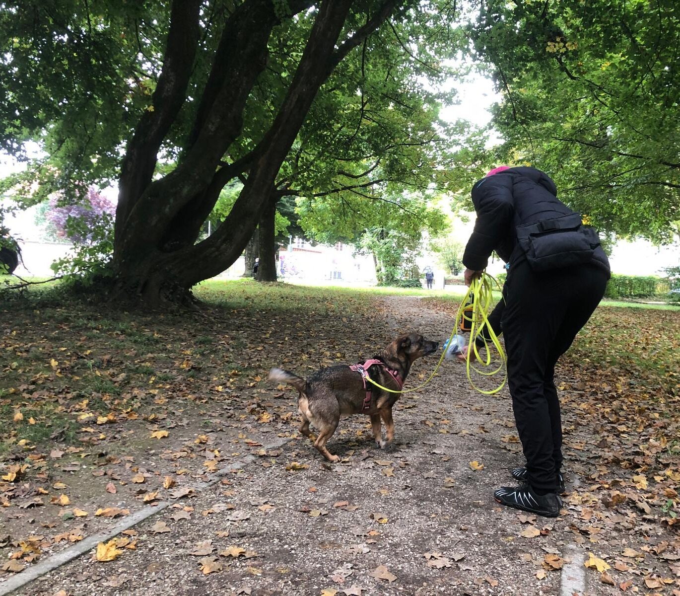 Auch Hunde, die unsicher gegenüber anderen Hunden oder Menschen sind, profitieren häufig stark vom Mantrailing. Dabei wird jeder Hund individuell gefördert – ohne Zwang und in seinem eigenen Tempo. Der Kontakt zur Zielperson erfolgt nur, wenn der Hund dazu bereit ist.